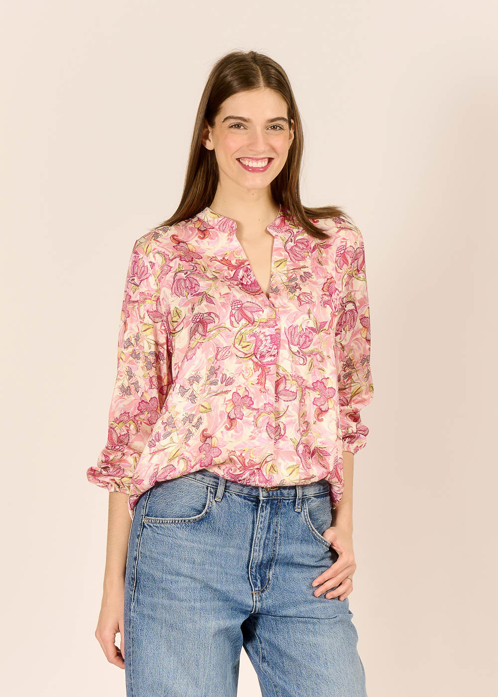 Frühling zum Anziehen: Die Bluse mit floralem Design bringt eine besondere Strahlkraft und feminine Eleganz in deine Garderobe. Edle Viskose sorgt für ein angenehmes Tragegefühl.